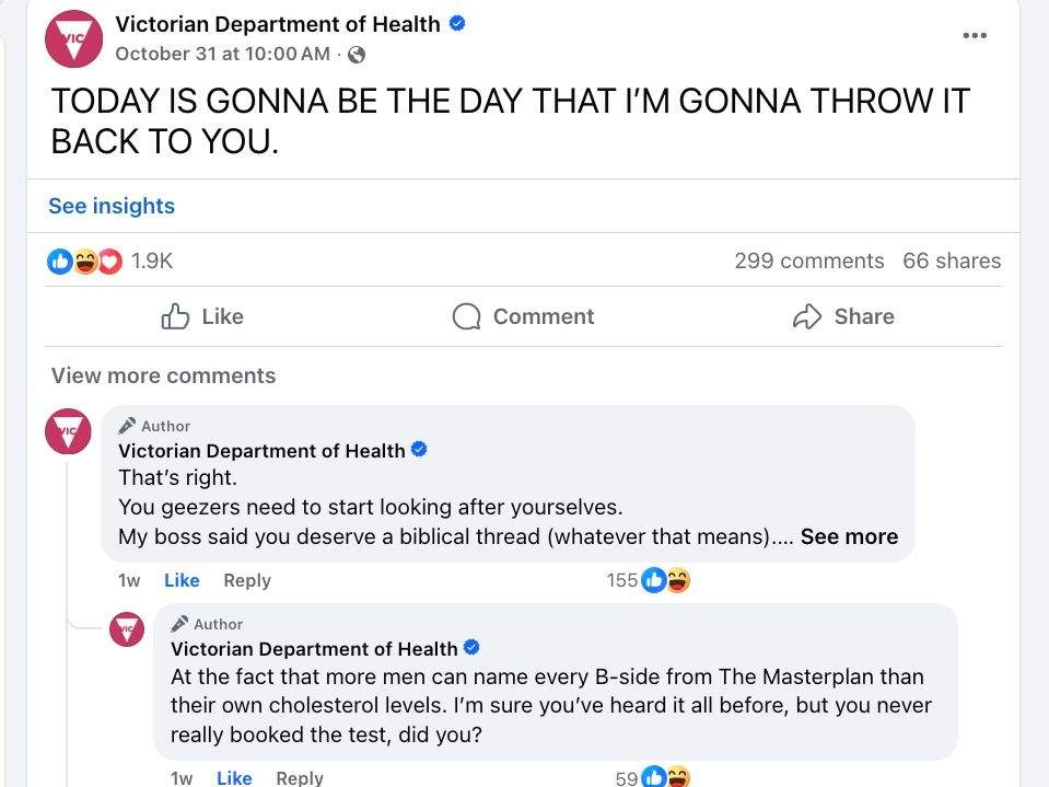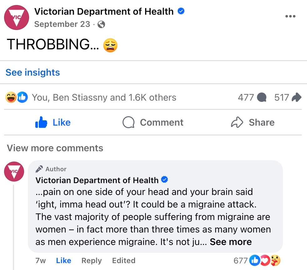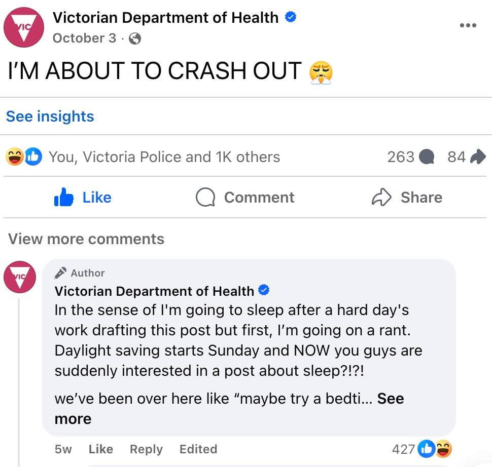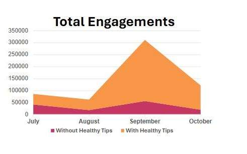 I was tasked with improving The Department of Health's engagement on IG and FB to engage younger audiences. The 'healthy tips' content strategy I manage has an average engagement of 15.5% per post, compared to 5.5% engagement for normal content. Due to this performance, campaign strategies have now been adjusted to include these more entertaining formats (see below).
